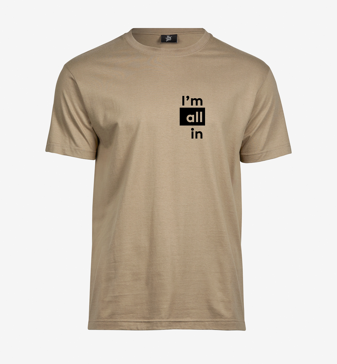 Koszulka I'm All In dla tych, którzy lubią podejmować ryzyko! Wybierz jedną z trzech wersji kolorystycznych nadruków – czarny, złoty lub srebrny – i zdecyduj, czy chcesz dodać swój własny podpis na rękawie, aby podkreślić swoją indywidualność.