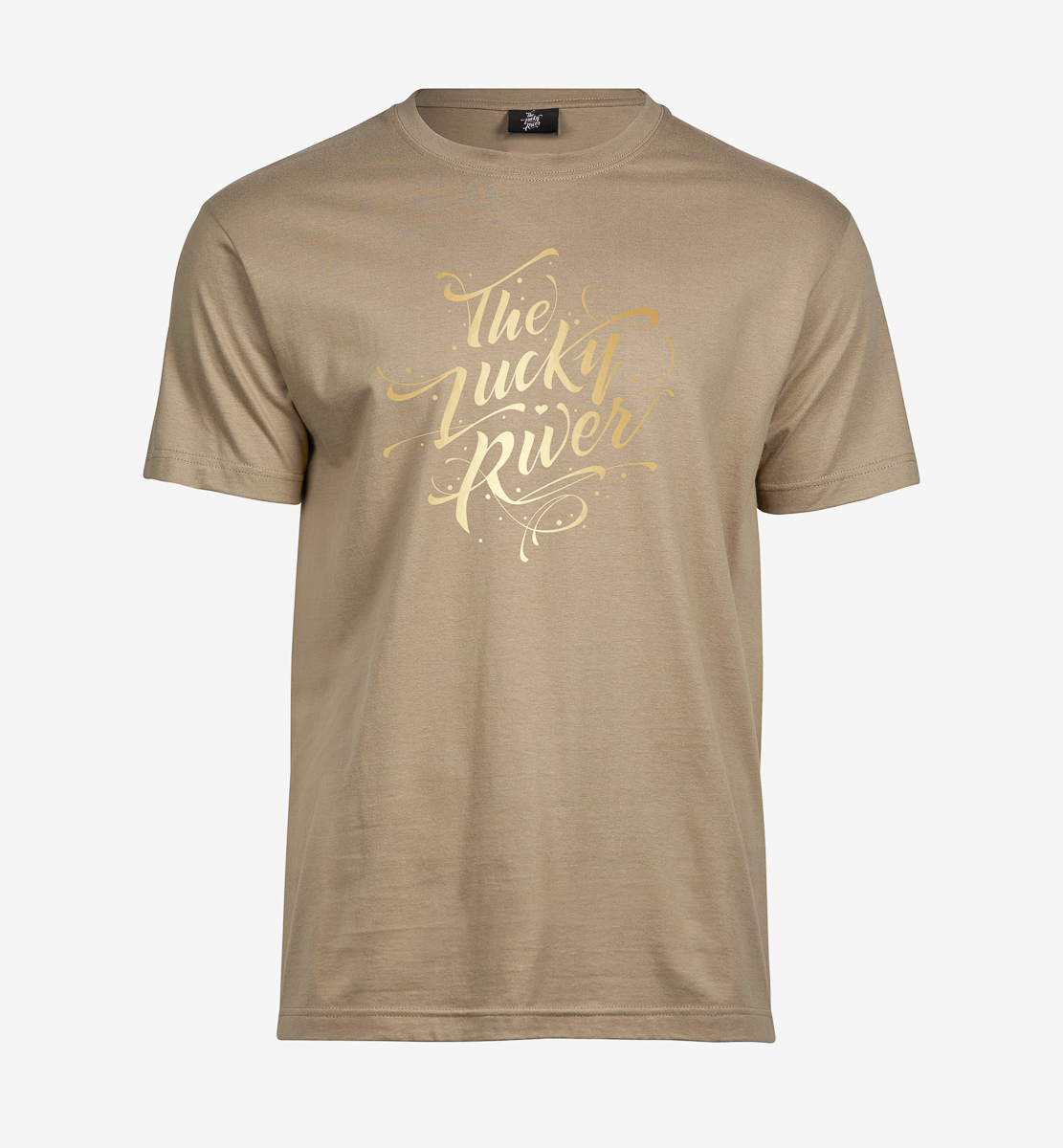 Koszulka The Lucky River z ręcznie wykonanym napisem to połączenie wyjątkowego stylu i najwyższej jakości. Wybierz jedną z trzech wersji kolorystycznych nadruków – biały, złoty lub srebrny – i zdecyduj, czy chcesz dodać swój własny podpis na rękawie, aby podkreślić swoją indywidualność.